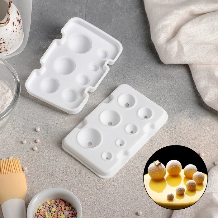 Форма для муссовых десертов и выпечки из 2 частей Доляна "Шарики", 138,5 см, 7 ячеек, цвет белый
