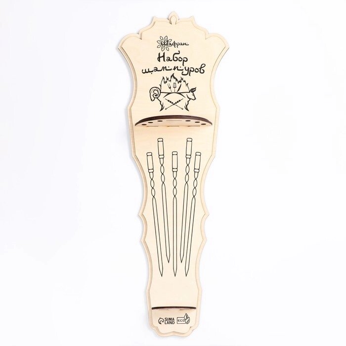 Набор подарочный 6 шампуров, нож-вилка на деревянном щите