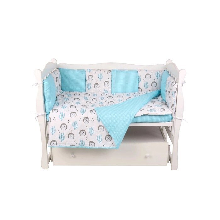 Комплект в кроватку, 15 предметов, принтy ёжики, бязь