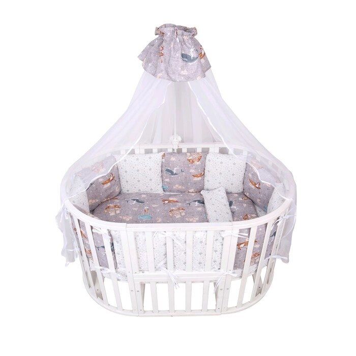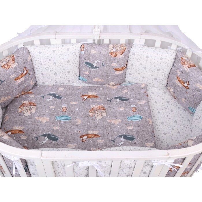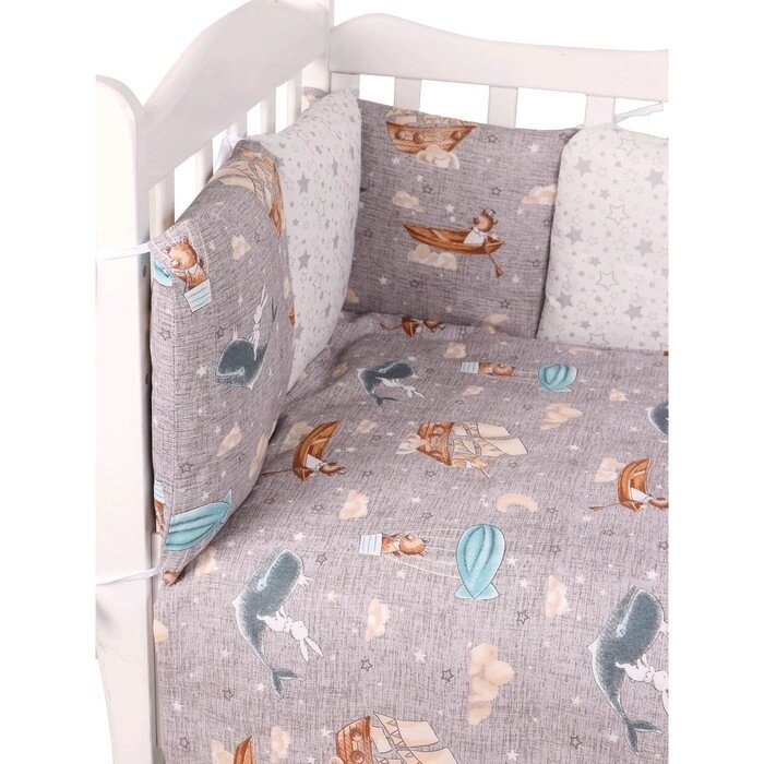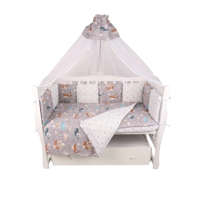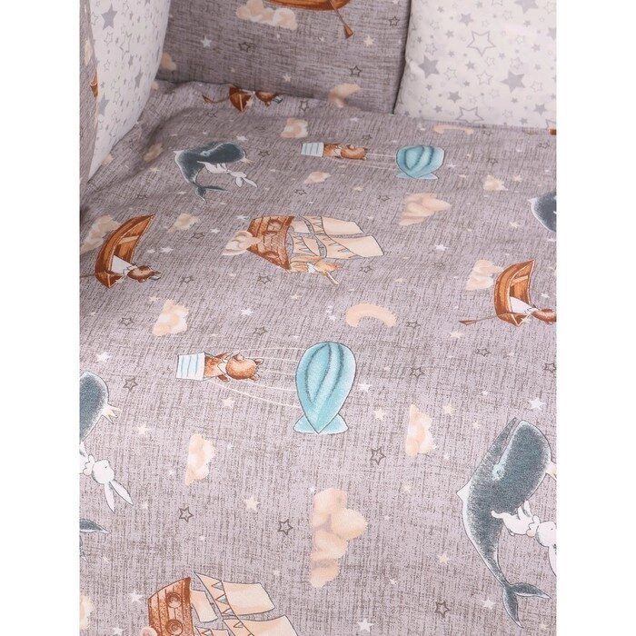 Комплект в кроватку, 15 предметов, принтy путешественники, бязь