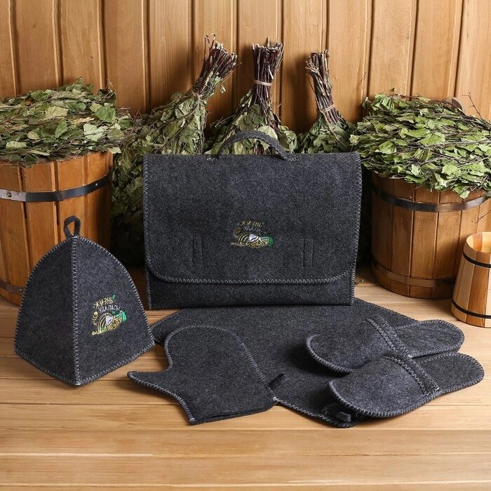 Набор банный портфель 5 предметов "Жизнь удалась! серый