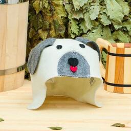 Шапка для бани с детской аппликацией "Собачка", белая, войлок, эконом