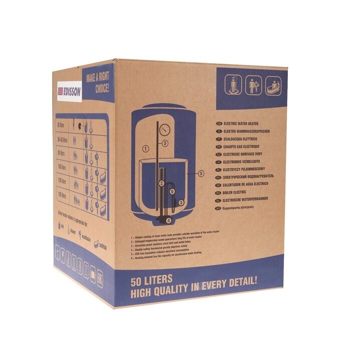 Водонагреватель EDISSON ER 50 V, накопительный, круглый, эмаль, 50 л, 1500 Вт