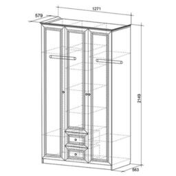Шкаф 3-створчатый с ящиками*Алиса"белый/крем)