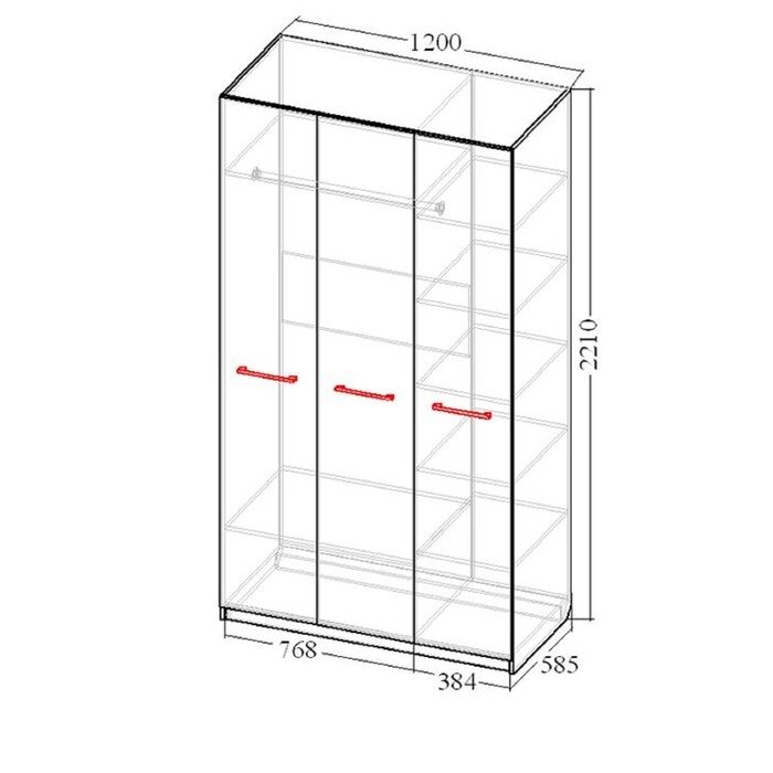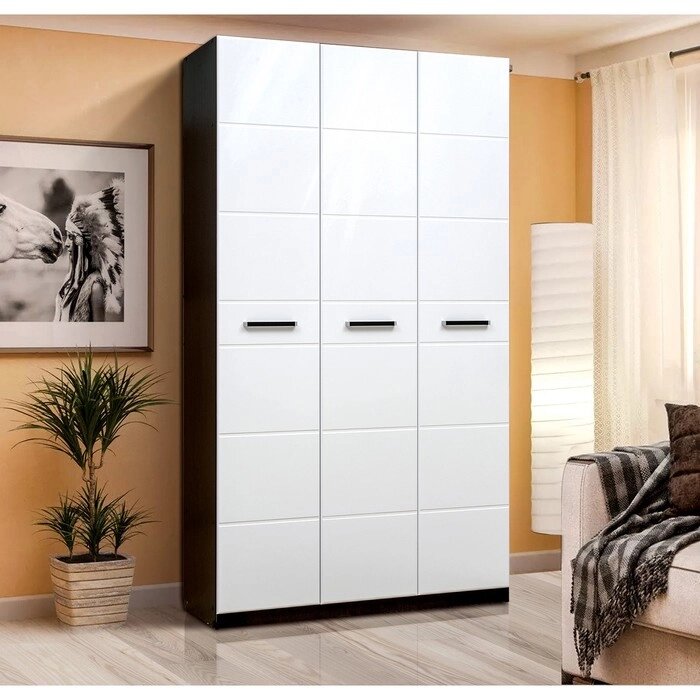 Шкаф 3-х дверный "Венеция 8", 1200 585 2210 мм, цвет венге / белый глянец