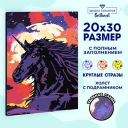 Алмазная мозаика на раме с полным заполнением "Единорог в ночи", 20х30 см