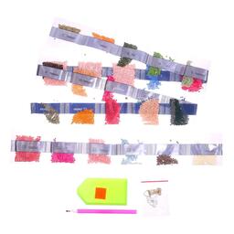 Разложите кристаллики с помощью специального карандаша по указанной схеме, заполните всё полотно. Тканевая основа с точечным клеевым покрытием будет надёжно удерживать стразы. На картине уже обозначены необходимые оттенки. Отдельно вас порадует то, что все цвета схемы расположены рядом с рабочей областью холста. А это значит, что схема всегда будет под рукой!