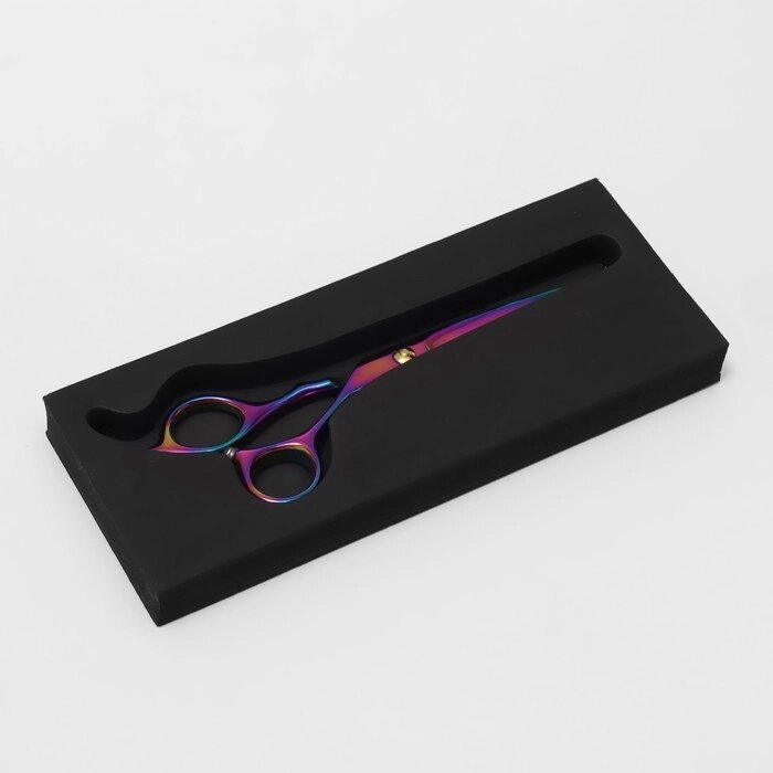 Ножницы парикмахерские с упором, загнутые кольца, лезвие — 5,5 см, цвет хамелеон