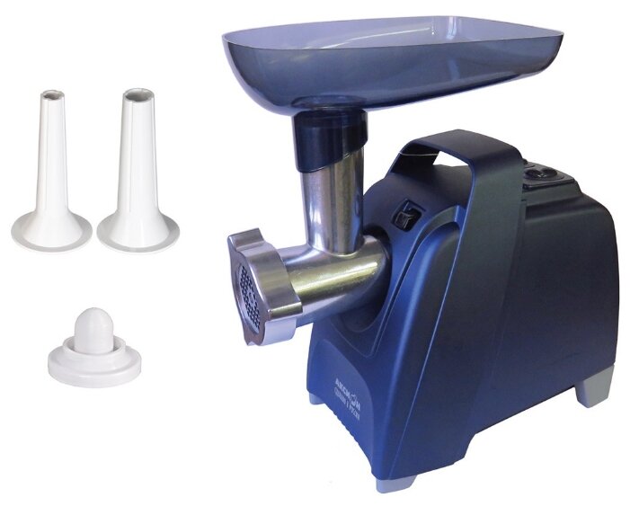 Перерабатывает 4 кг/мин Насадка для приготовления колбас, насадка для кеббе, диск для фарша Корпус из пластика Отсек для хранения насадок.
