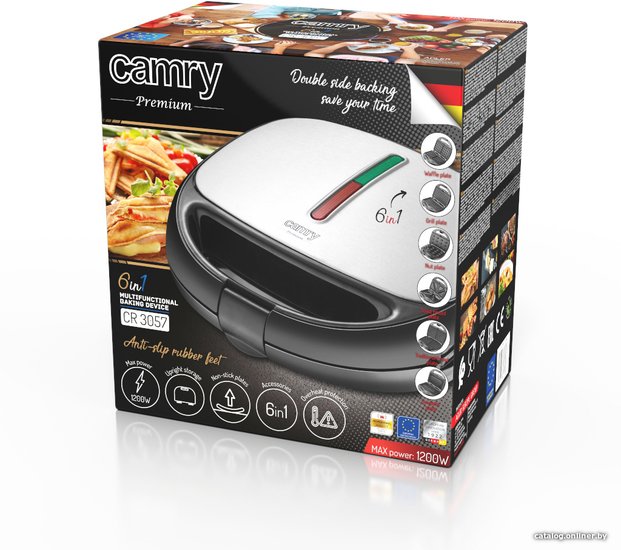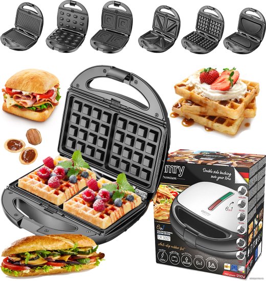 • Рабочая поверхность гриль-пластина, форма для 2 ломтиков хлеба, вафельница, орешница, форма для омлета