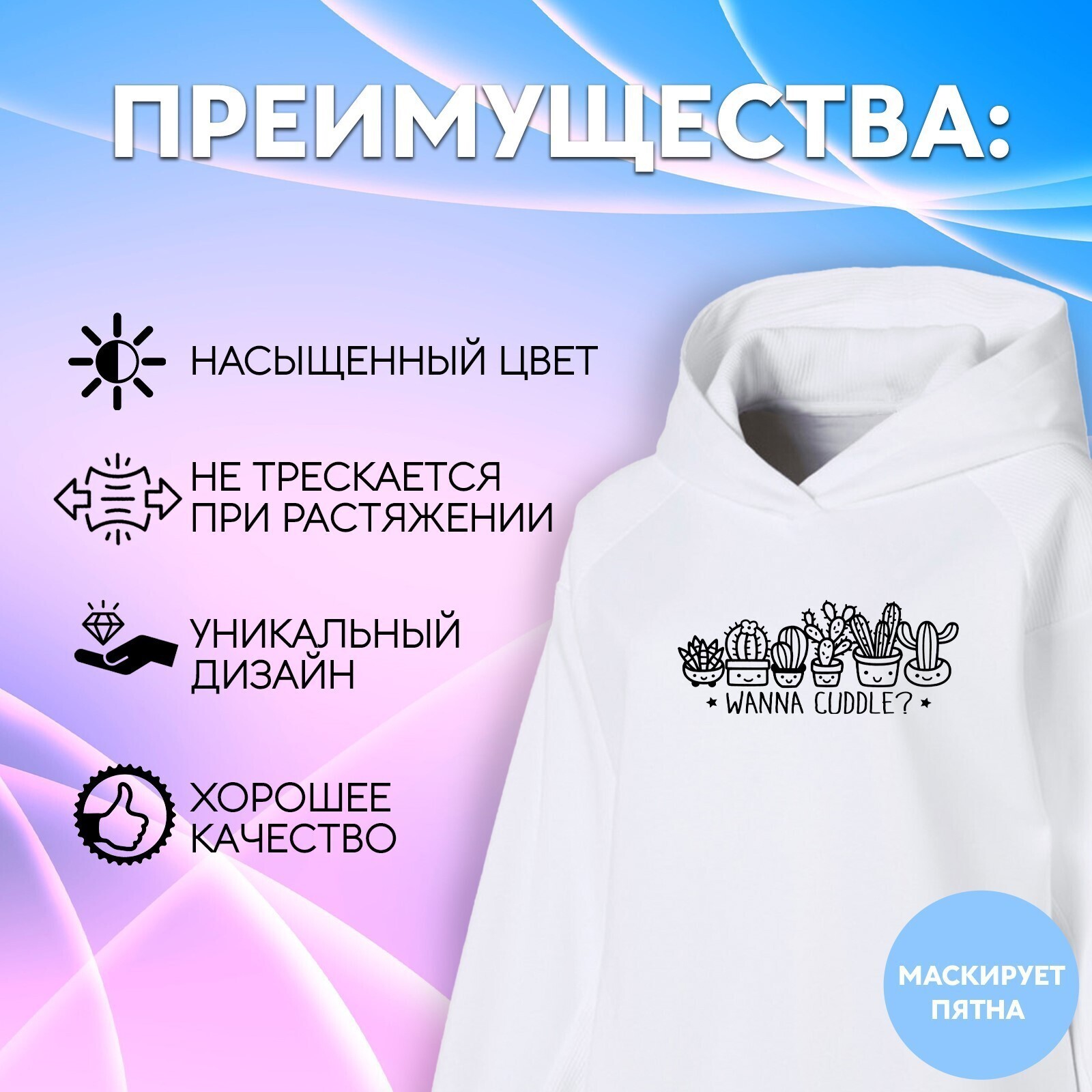 Термонаклейка «Wanna Cuddle» поможет сделать любую вещь уникальной и интересной. Термотрансфер яркий и стильный, он хорошо тянется, не трескается при растяжении и не отклеивается во время стирки. Аппликация подходит для нанесения практически на любую ткань и вид одежды, главное — делать всё по приложенной инструкции.
