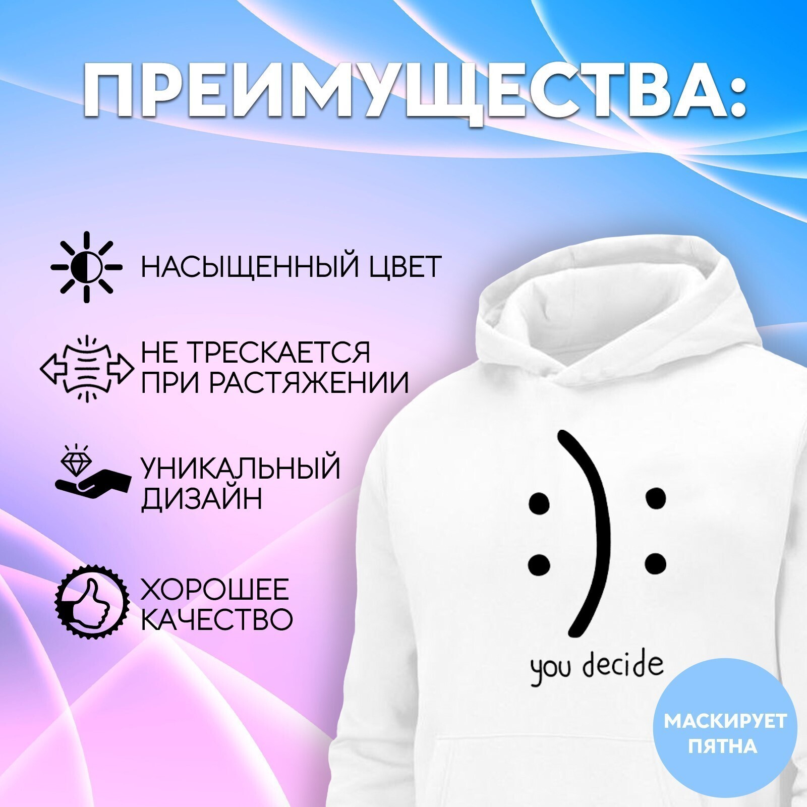 Термонаклейка «You decide» поможет сделать любую вещь уникальной и интересной. Стильный термотрансфер хорошо тянется, не трескается при растяжении и не отклеивается во время стирки. Аппликация подходит для нанесения практически на любую ткань и вид одежды, главное — делать всё по приложенной инструкции.