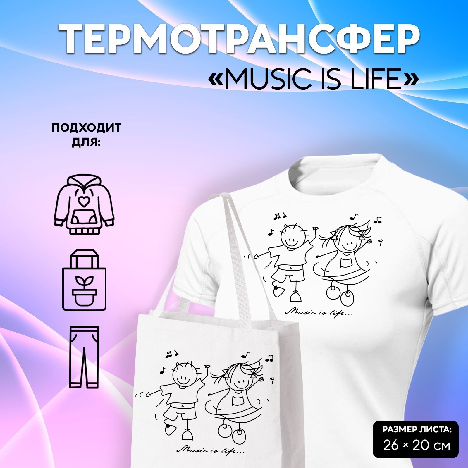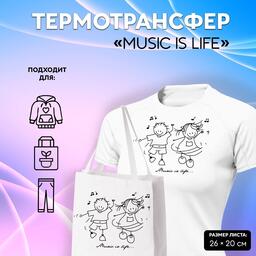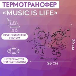 Термотрансфер «Music Is Life», 26 × 20 см, цвет чёрный
