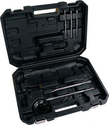 • В комплекте дополнительная рукоятка, кейс, угольные щетки, пыльник, пика (зубило), долото, бур (3 шт.)