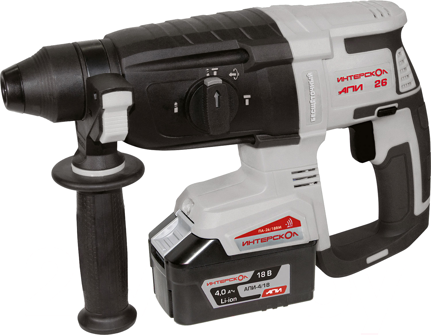 - В комплекте дополнительная рукоятка, ограничитель глубины сверления, кейс, зарядное устройство