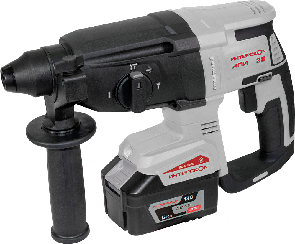- В комплекте дополнительная рукоятка, ограничитель глубины сверления, кейс, дополнительный аккумулятор, зарядное устройство