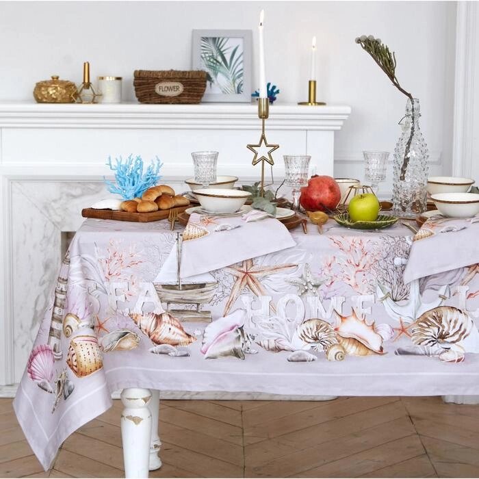 Скатерть "Этель" Коралловый риф 220х145см +3см, 100% хл, саржа 190 гр/м2