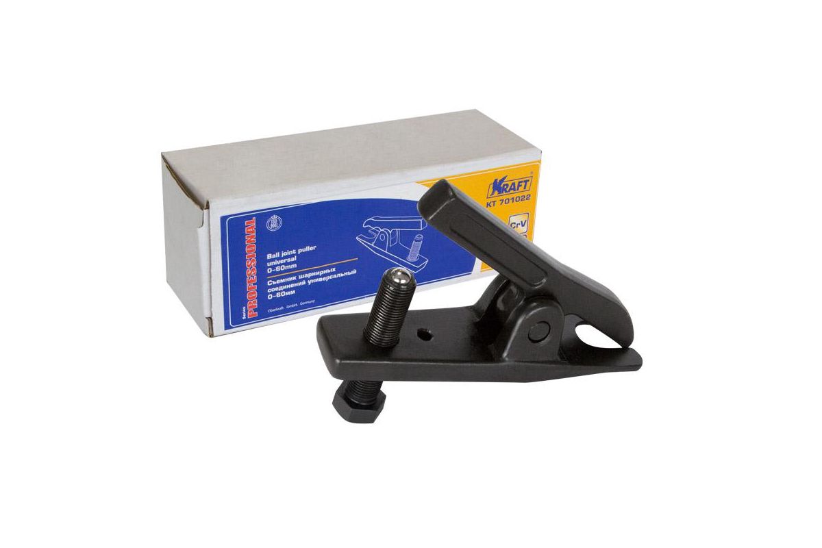 Съемник шарнирных соединений TM Kraft применяется для обслуживания шарнирных соединений рулевых тяг, шаровых опор, реактивных тяг и т.п. в ограниченном пространстве и рекомендован к использованию при обслуживании легковых автомобилей.