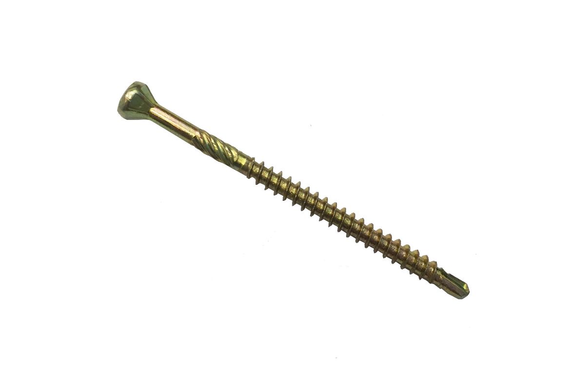 - Обратная контррезьба для надёжной фиксации: под головкой шурупа находится контррезьба, прижимающая прикрепляемые доски к основанию, исключая их скрипение во время ходьбы.
