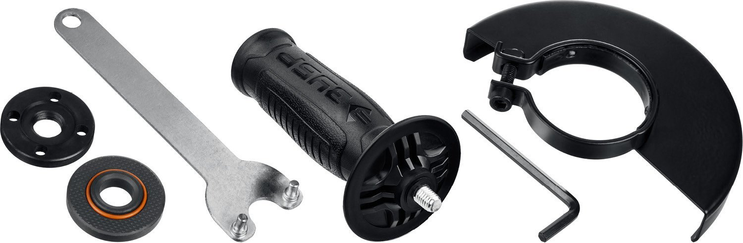 Комплект поставкиМашина углошлифовальная, кожух защитный, рукоятка дополнительная, ключ специальный, ключ имбусовый, руководство по эксплуатации.