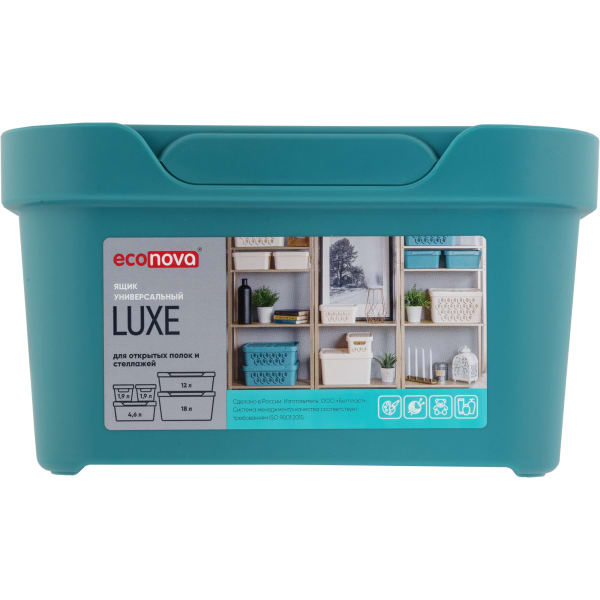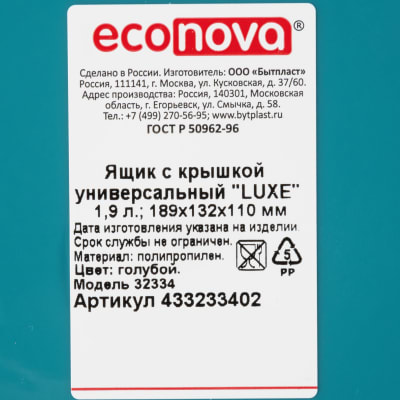 Ящик LUXE с крышкой 190х130х110 мм, 1,9 л, пластик, цвет голубой