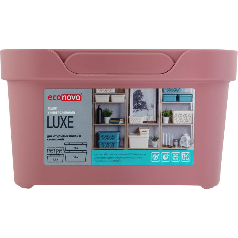 Ящик LUXE с крышкой 190х130х110 мм, 1,9 л, пластик, цвет розовый