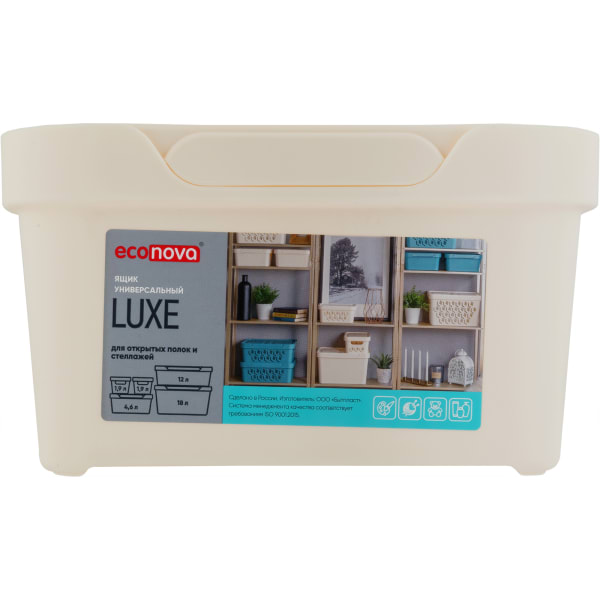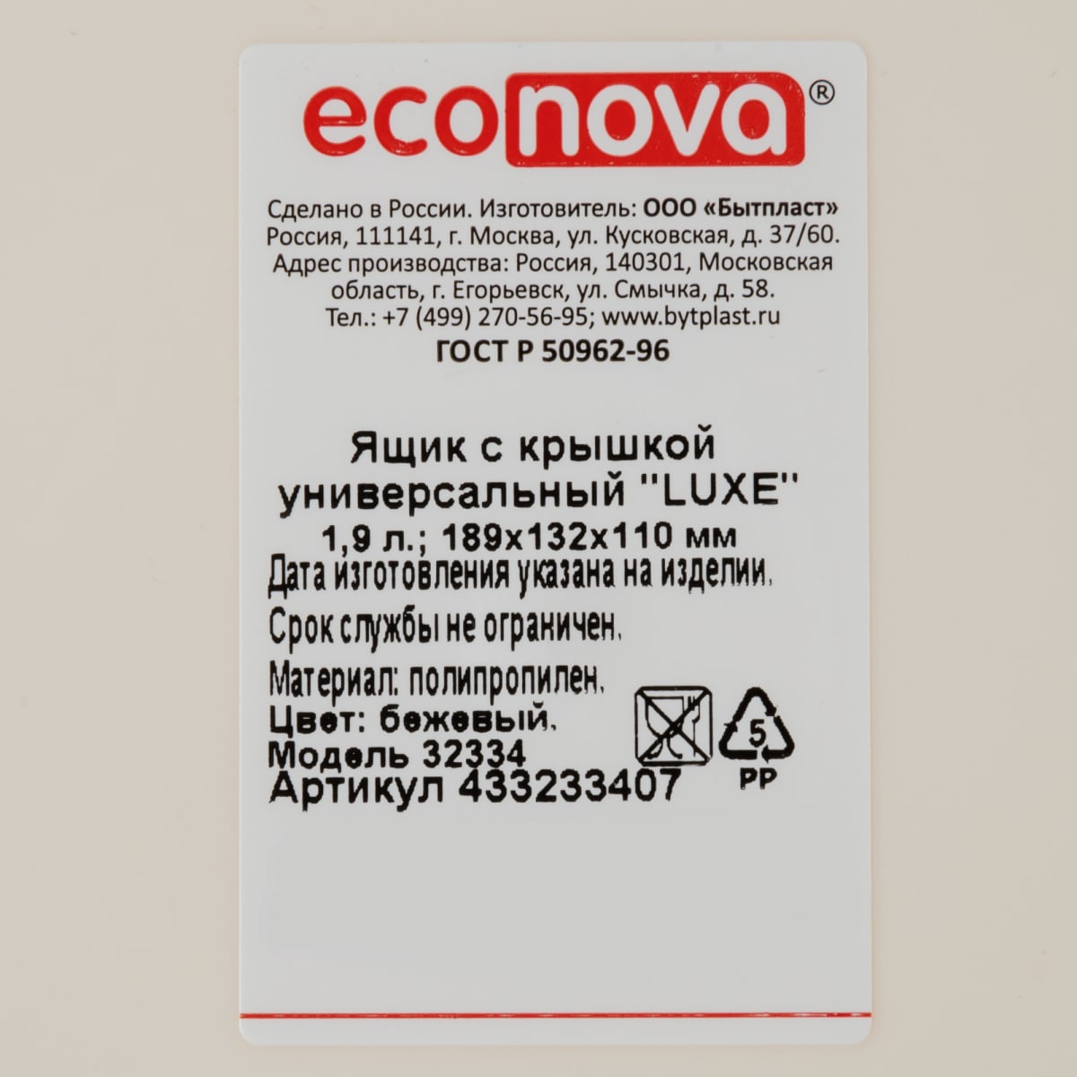 Ящик LUXE с крышкой 190х130х110 мм, 1,9 л, пластик, цвет бежевый