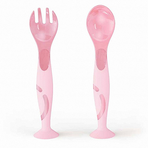 Ложка и вилка на присоске розовый Пластишка 431312005