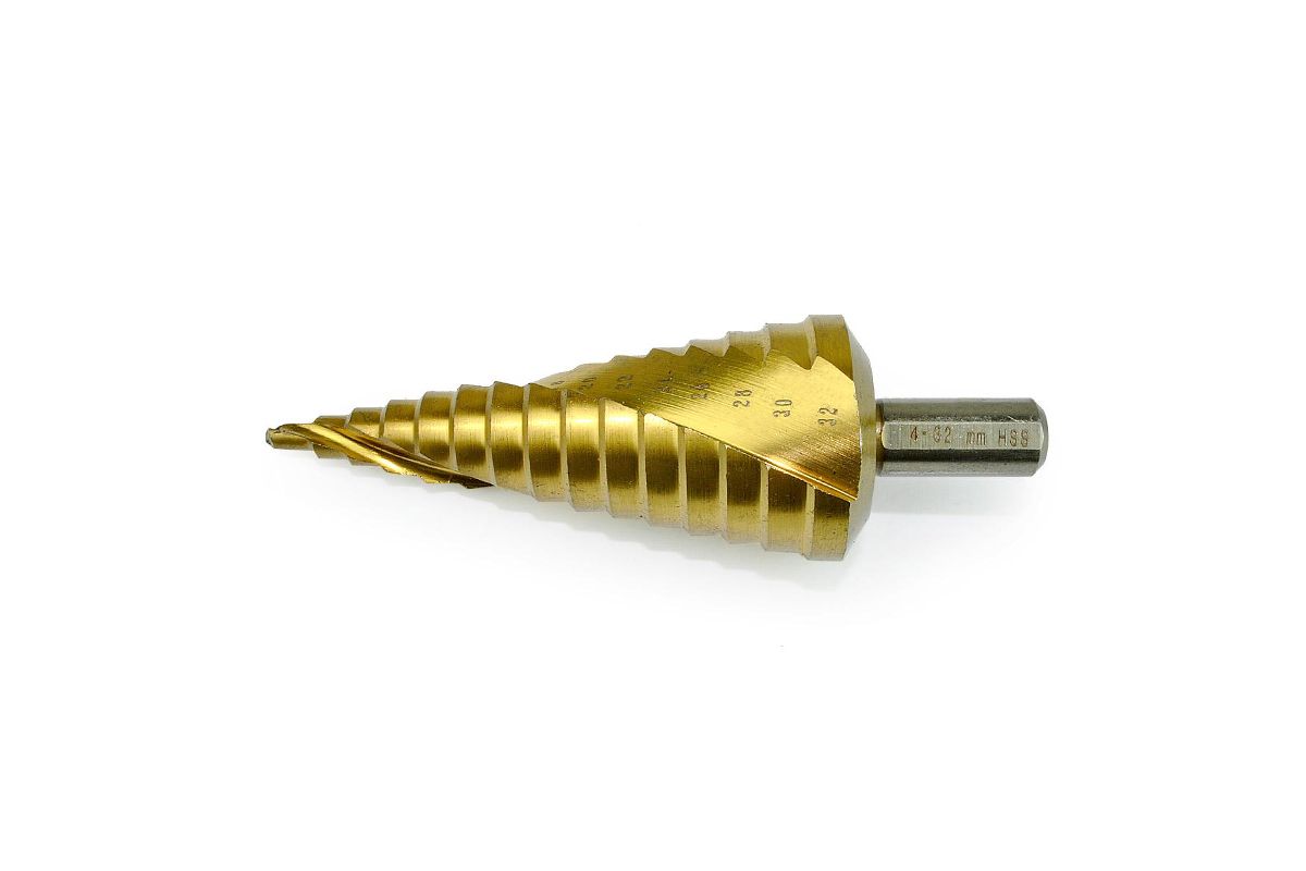 Конический профиль сверла, позволяет делать отверстия диаметром от 4 до 32 мм.