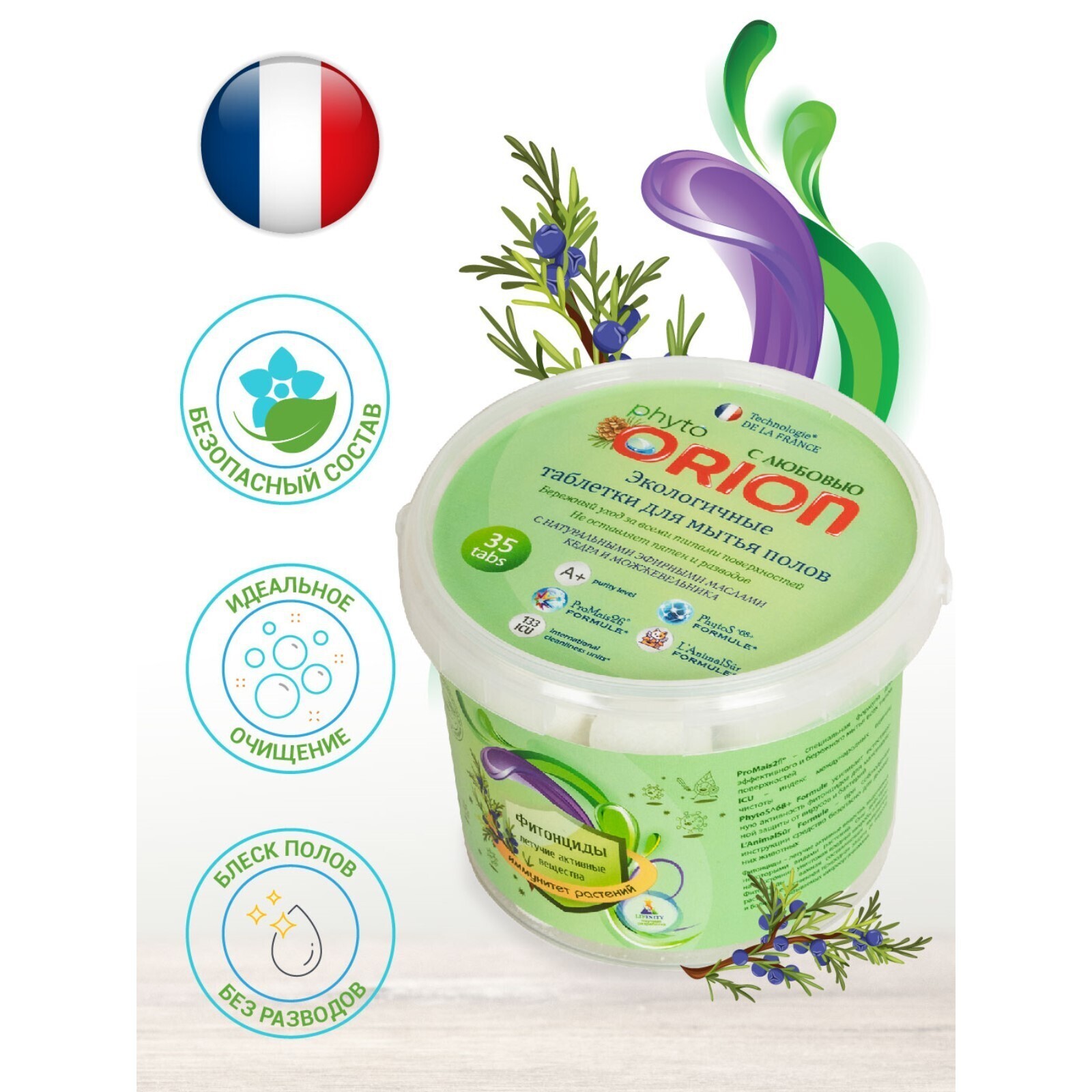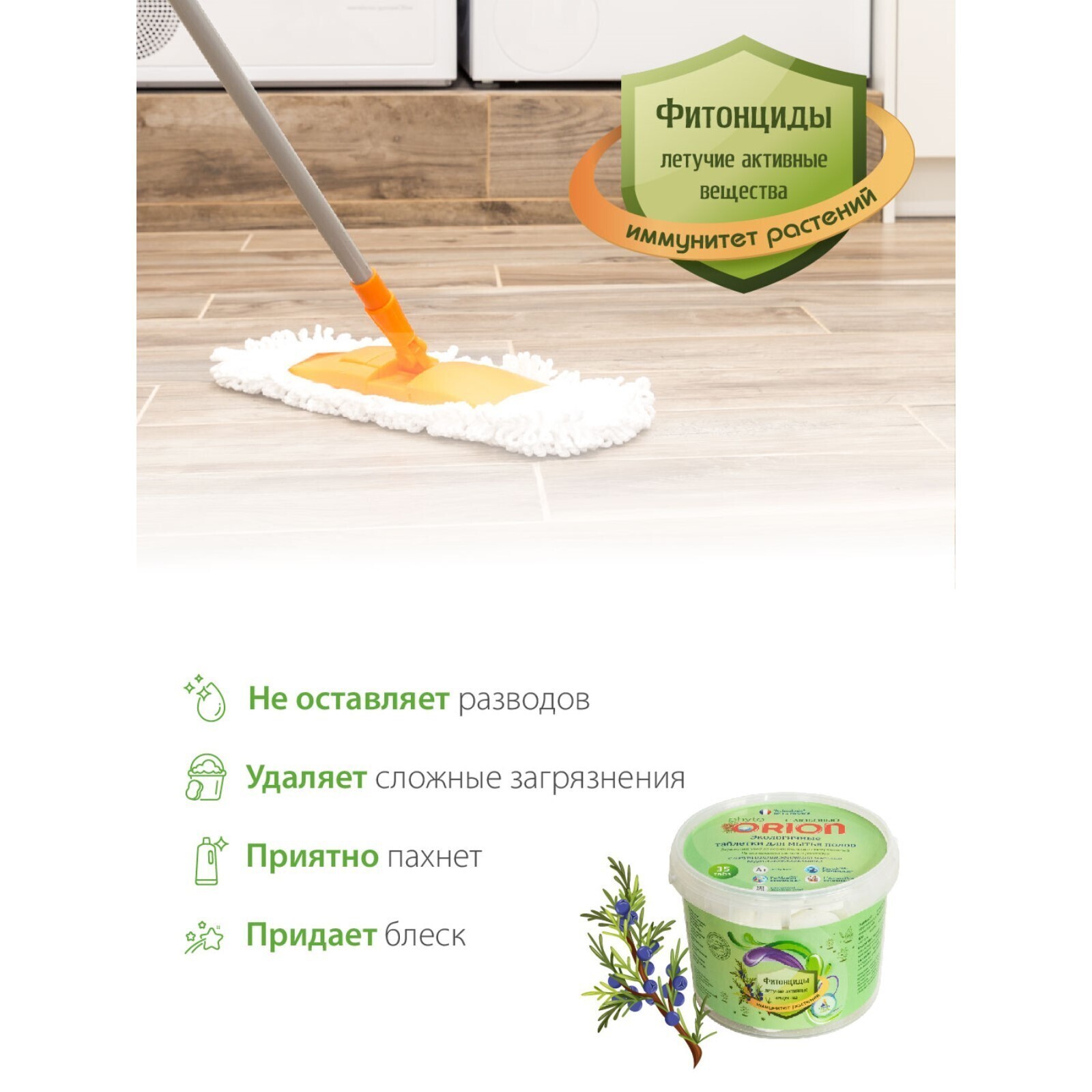 Фито-таблетки для мытья полов ORION «Кедр и можжевельник», в наборе 35 шт