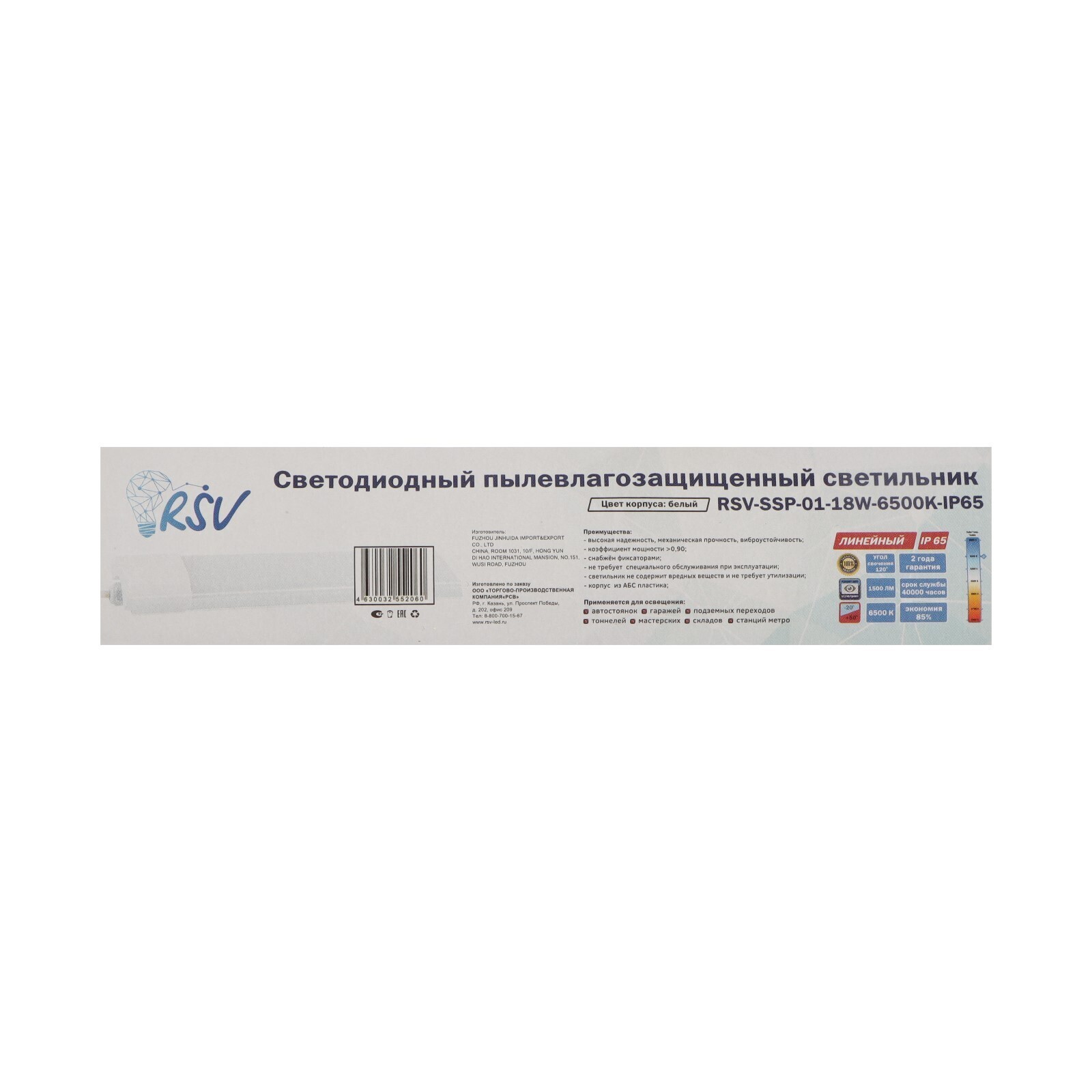 Светильник светодиодный пылевлагозащищенный RSV-SSP-01-18W-6500K-IP65