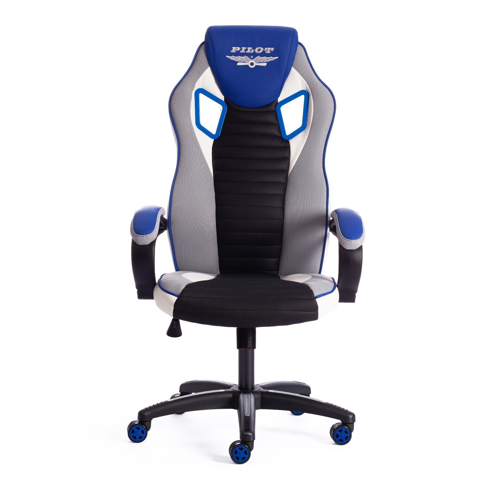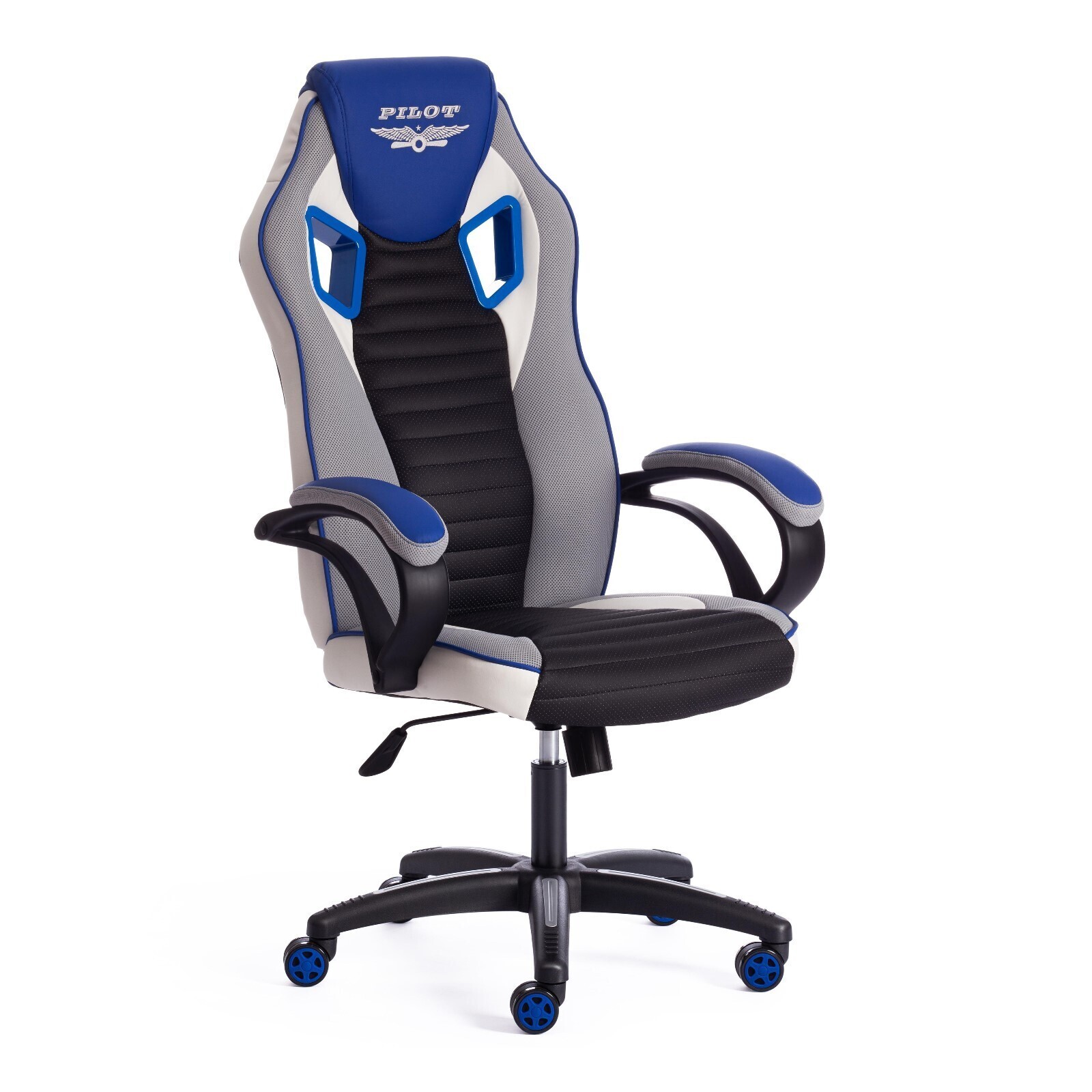 Кресло для геймеров PILOT экокожа/ткань, черный перфорированный/светлосерый/синий, 36-6/06/TW-14/36