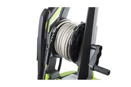 Для удобного хранения шланга высокого давления на корпусе предусмотрен специальный барабан, а насадки хранятся в специальном кармашке сзади на корпусе.
