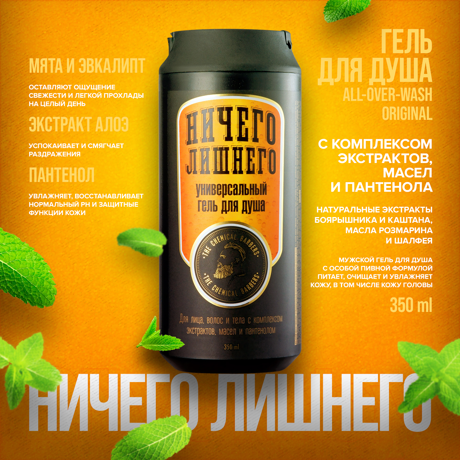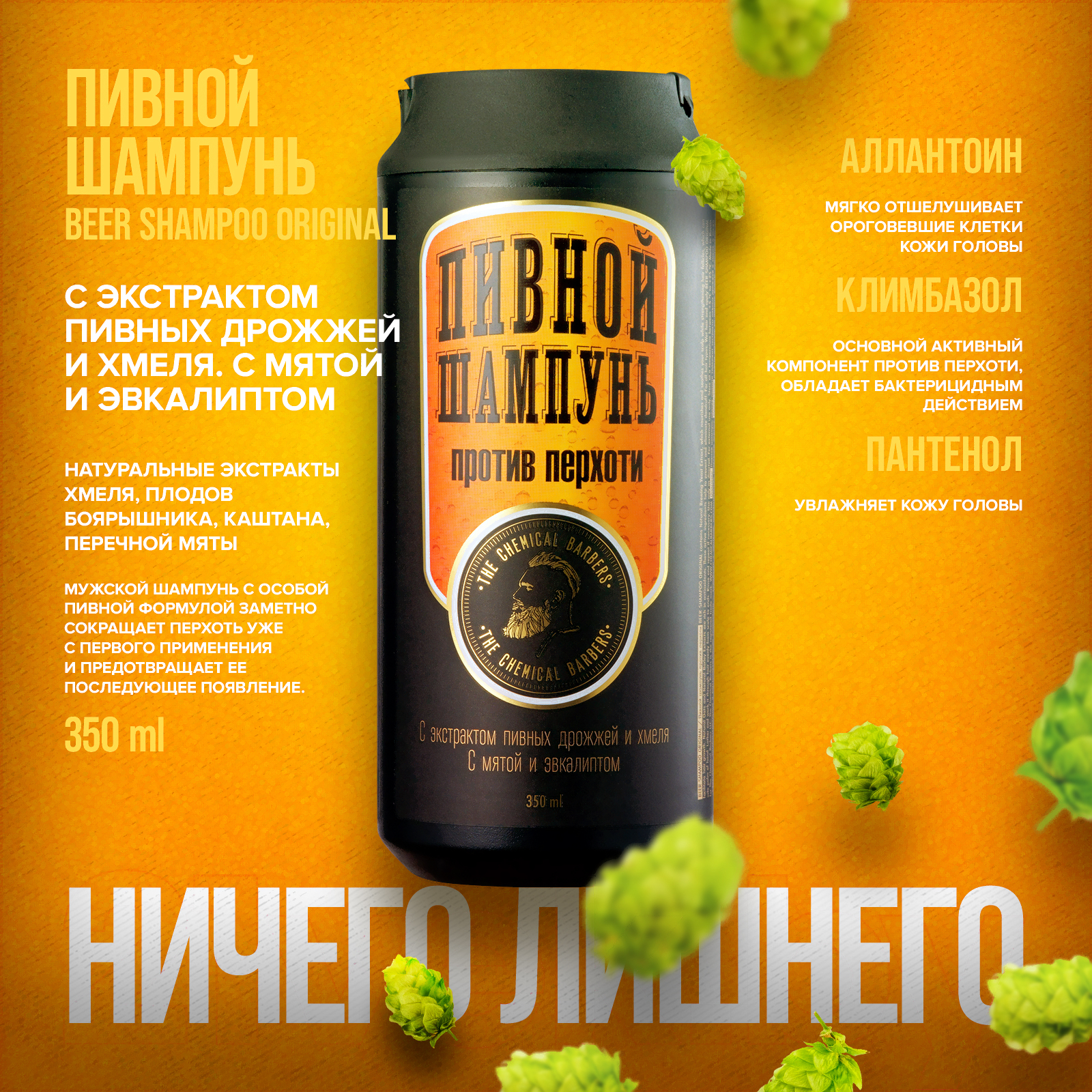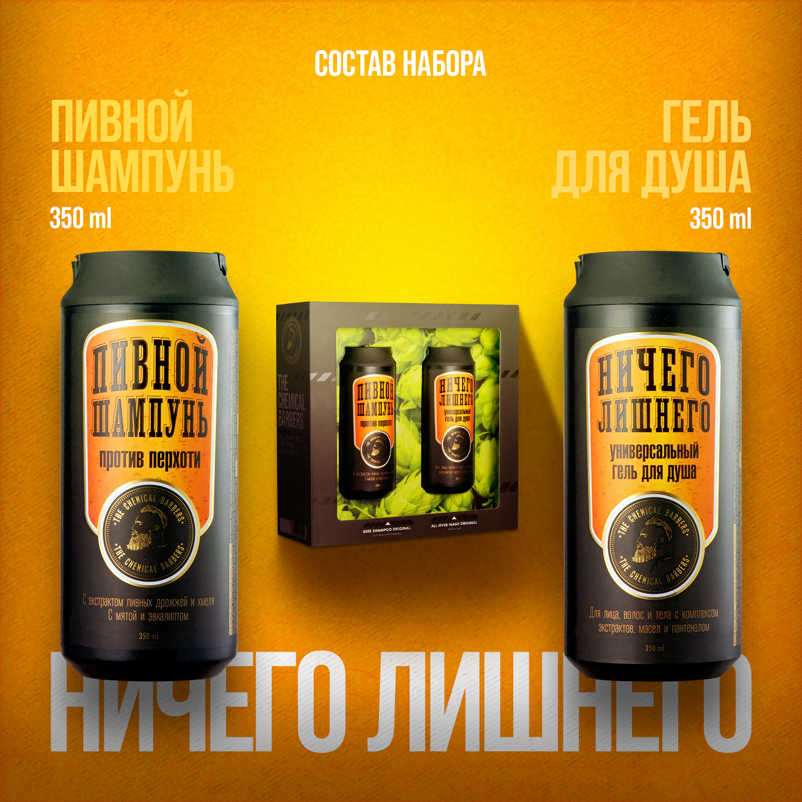 Набор косметики для тела и волос The Chemical Barbers Ничего лишнего Шампунь Beer 350мл+Гель для душа 3в1 350мл