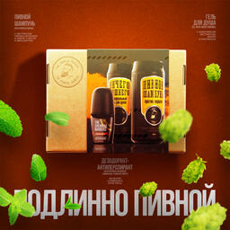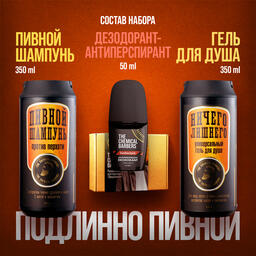 • В наборе гель для душа, дезодорант, шампунь для волос
