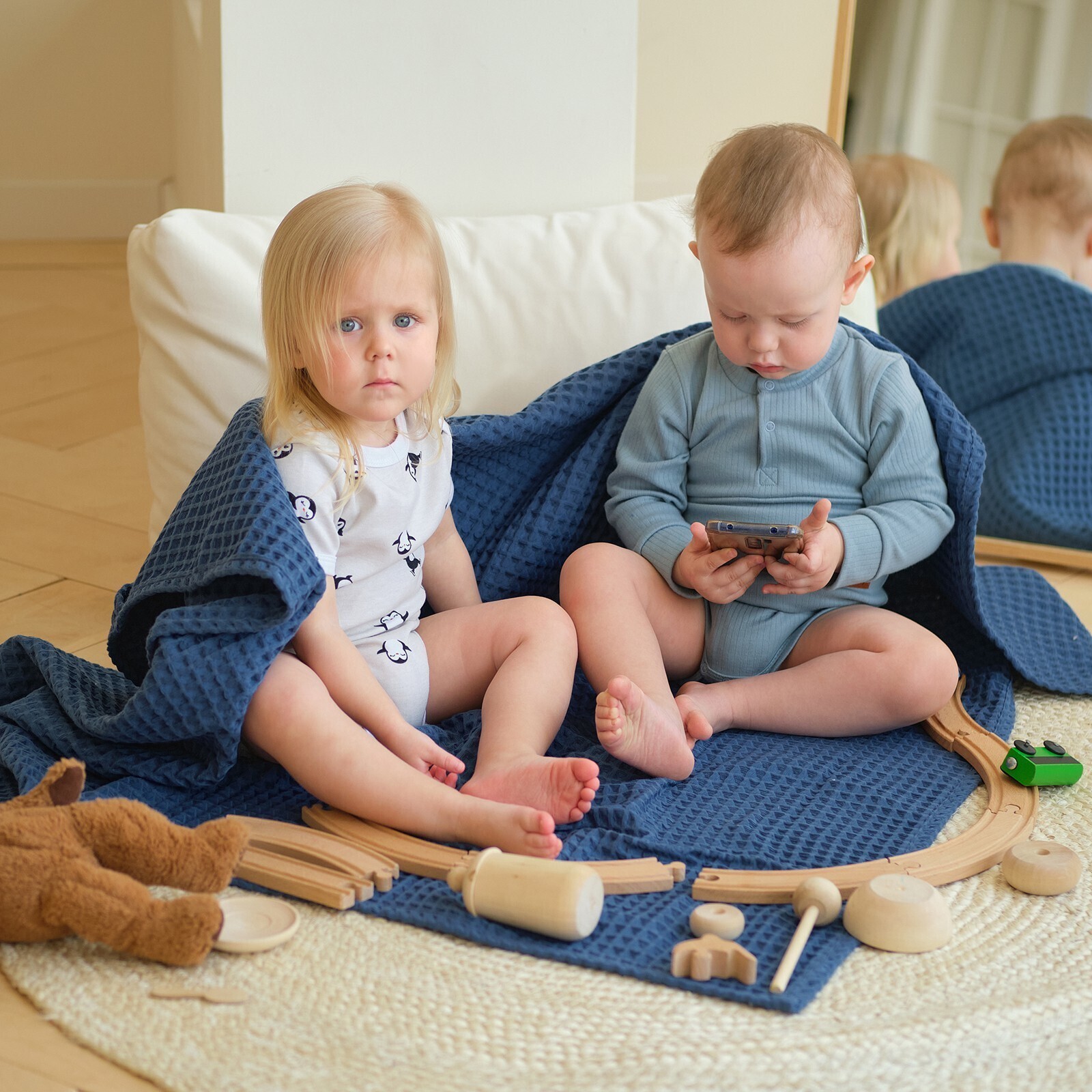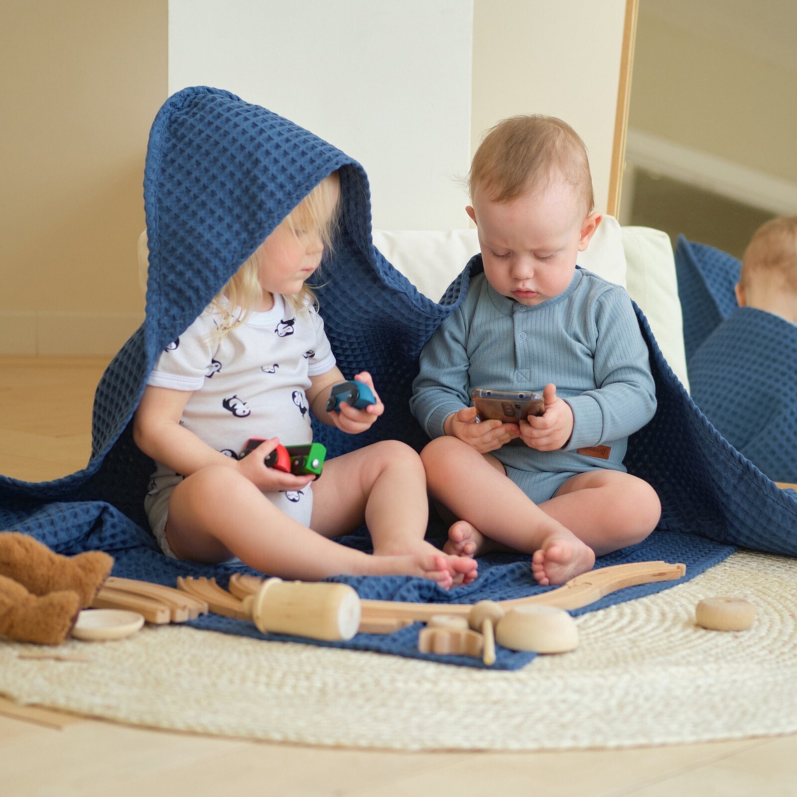 Полотенце уголок вафельное Крошка Я "Boho" 120х120 см, цвет синий, 100% хлопок, 290 г/м2