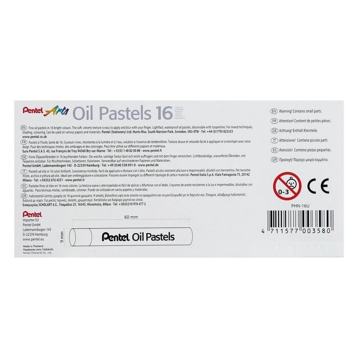 Пастель масляная, 16 цветов, Pentel, 8/60мм, в картоне