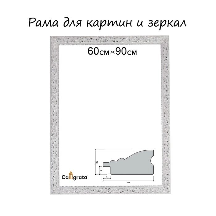 Рама для картин (зеркал) 60 х 90 х 4 см, дерево "Версаль", бело-серебристый