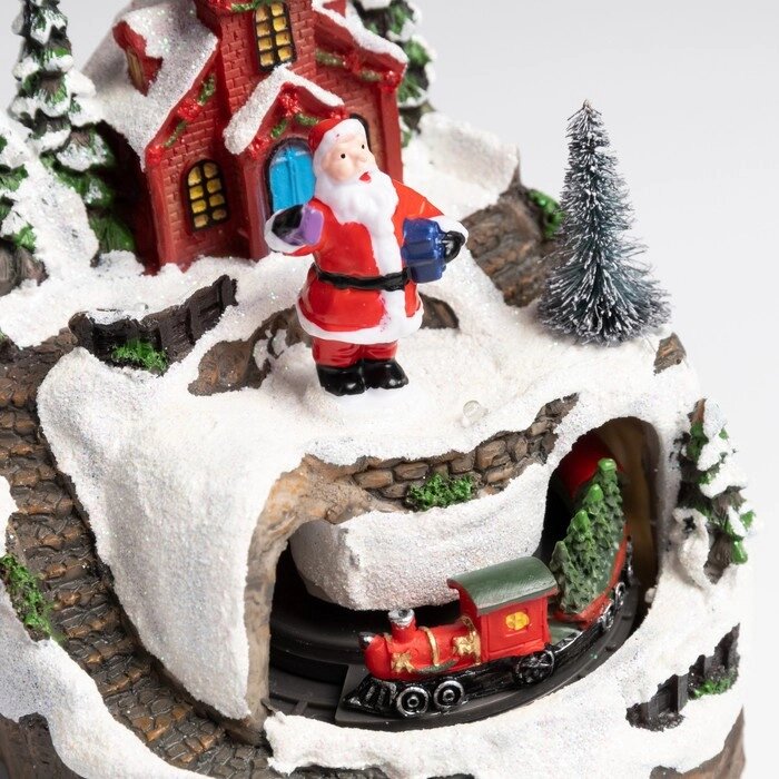 Фигура светодиодная "Поезд и Дед Мороз" 12x10x16 см, 5 LED, AAAx3, USB, музыка, Т/БЕЛЫЙ