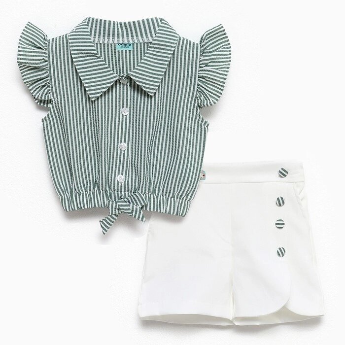 Комплект для девочки (футболка/шорты), цвет зелёный/белый, рост 116см