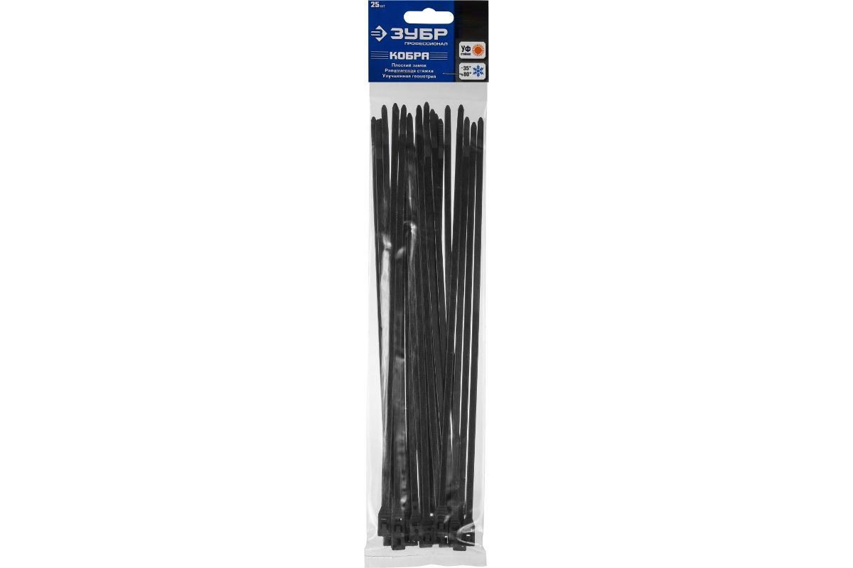 Хомуты ЗУБР 30935-46-370 КОБРА нейлоновые черные, с плоским замком, 4.6 х 370 мм, 25 шт