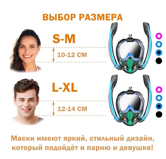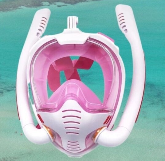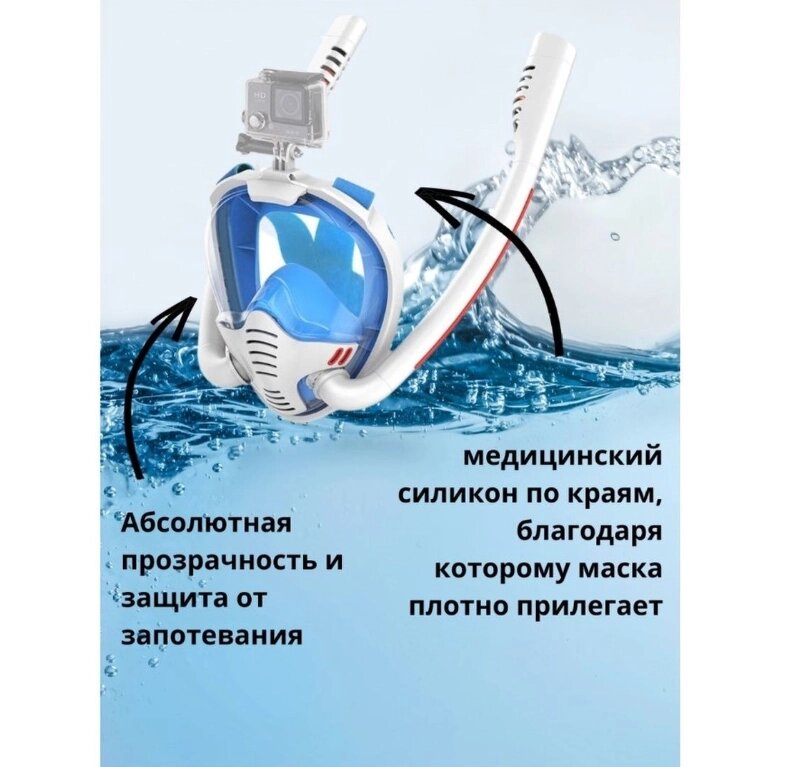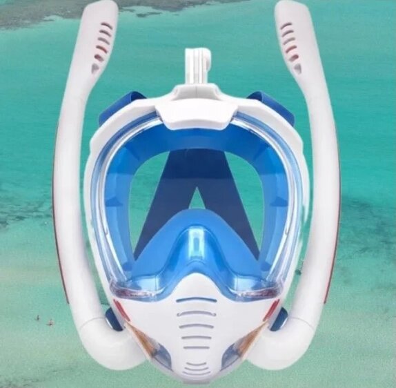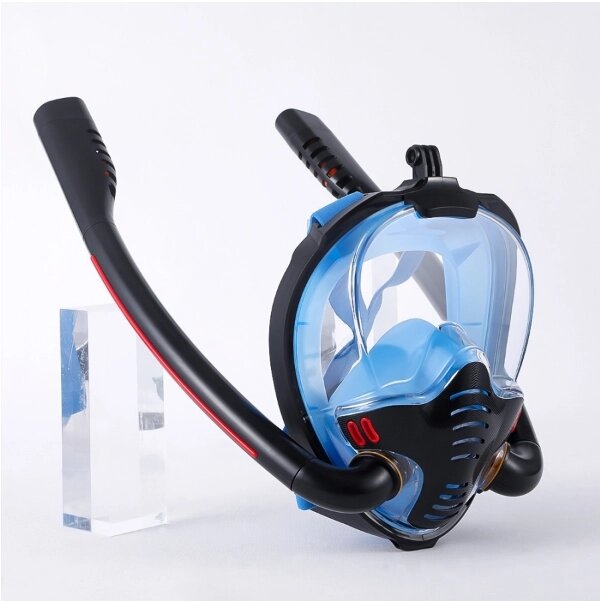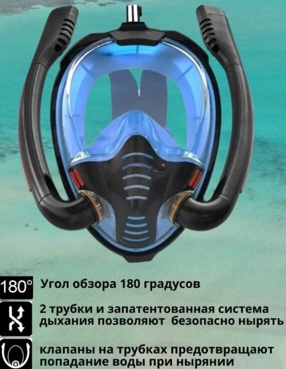 New Маска для снорклинга с двумя трубками К3-Double / Полнолицевая маска для плавания с креплением для экшн камеры и