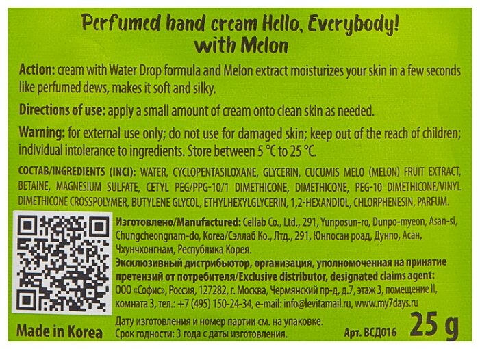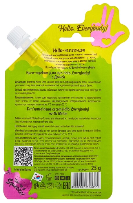 - Способ применения наносить небольшое количество крема на очищенную кожу рук по мере необходимости