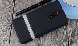 Чехол-книжка MyPads для Xiaomi Redmi K20 / Xiaomi Mi 9T с мульти-подставкой на жёсткой металлической основе черный с золотой полосой