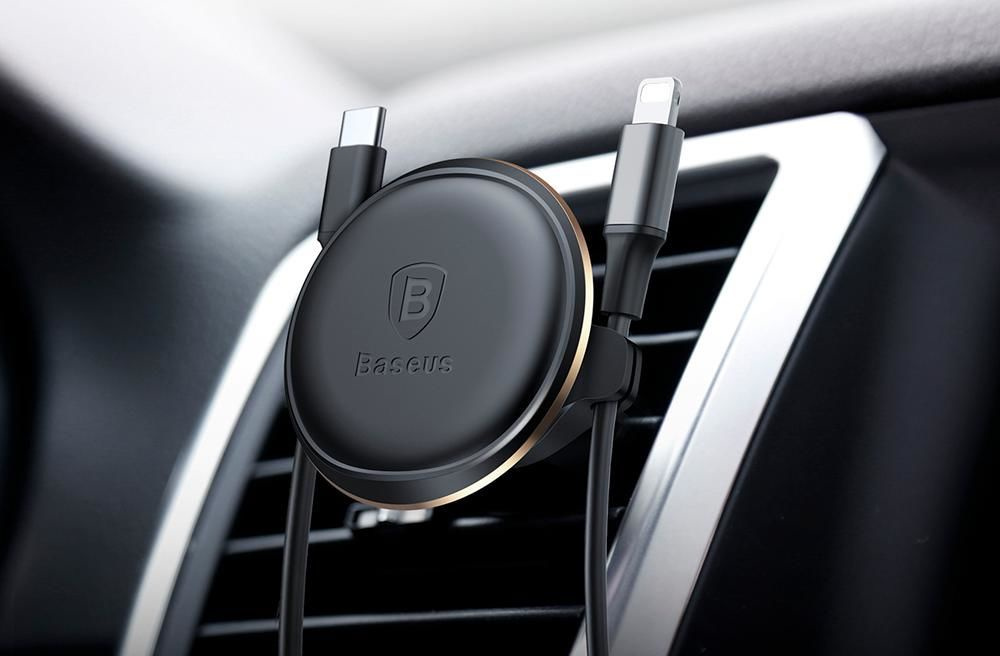 Автомобильный держатель для телефона в дефлектор магнитный Baseus With Cable Clip - Черный (SUGX-A01)