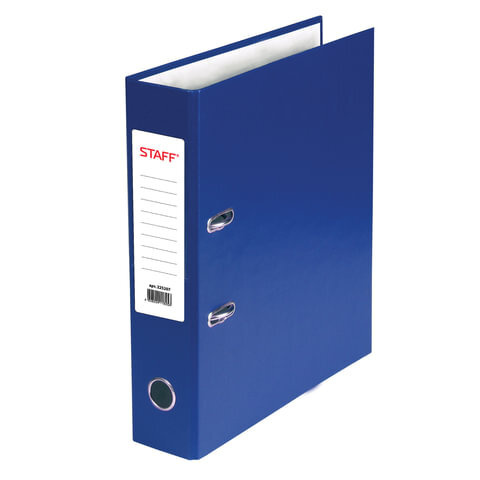 Папка-регистратор STAFF, с покрытием из ПВХ, 70 мм, без уголка, синяя, 225207