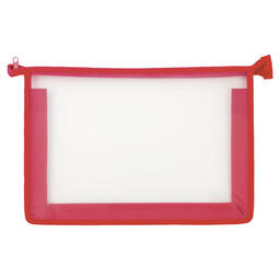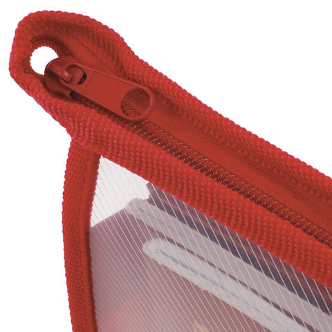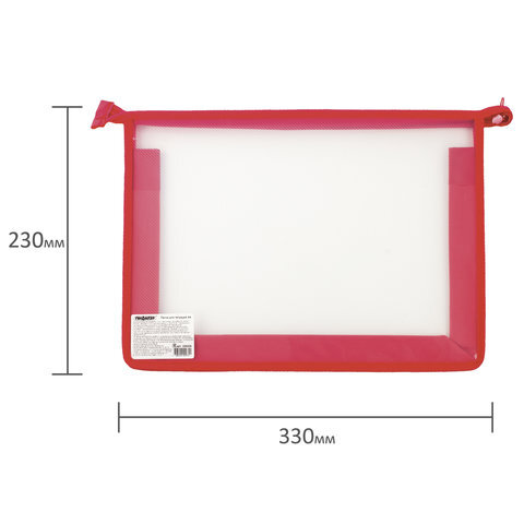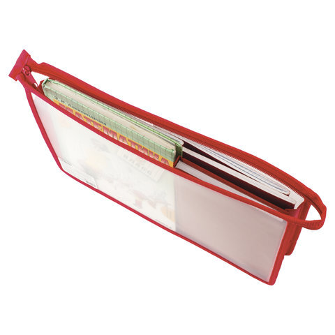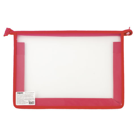 Папка для тетрадей А4 ПИФАГОР, пластик, молния сверху, прозрачная, красная, 228208