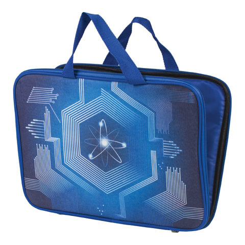Папка на молнии с ручками BRAUBERG, А4, ткань, с подкладкой, сублимация, для мальчиков, "Атом", 227089