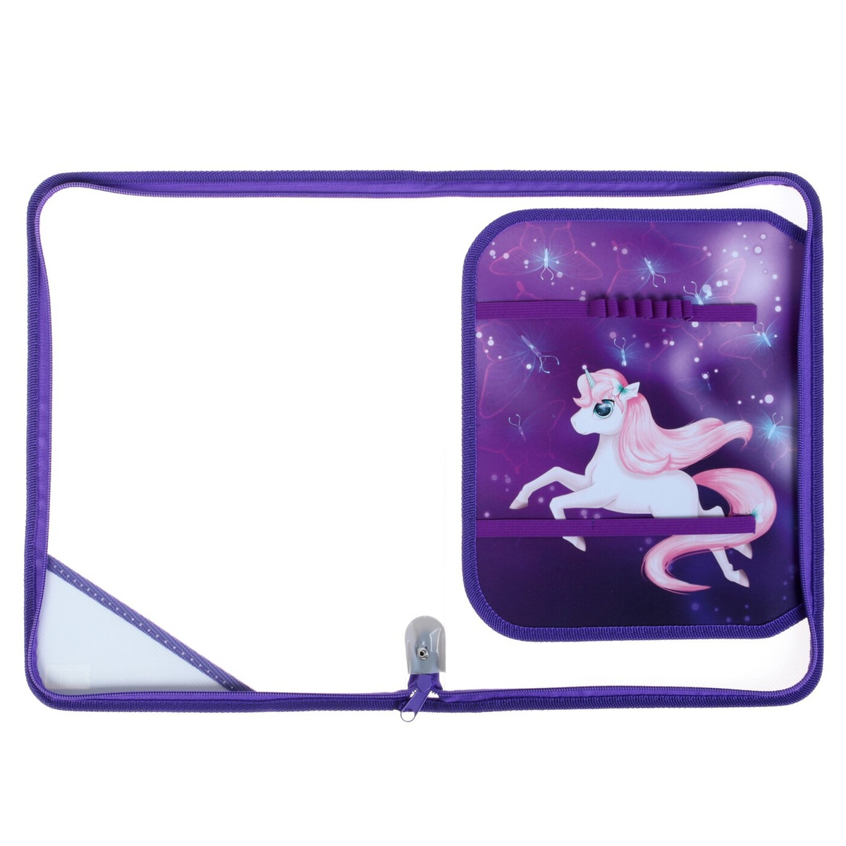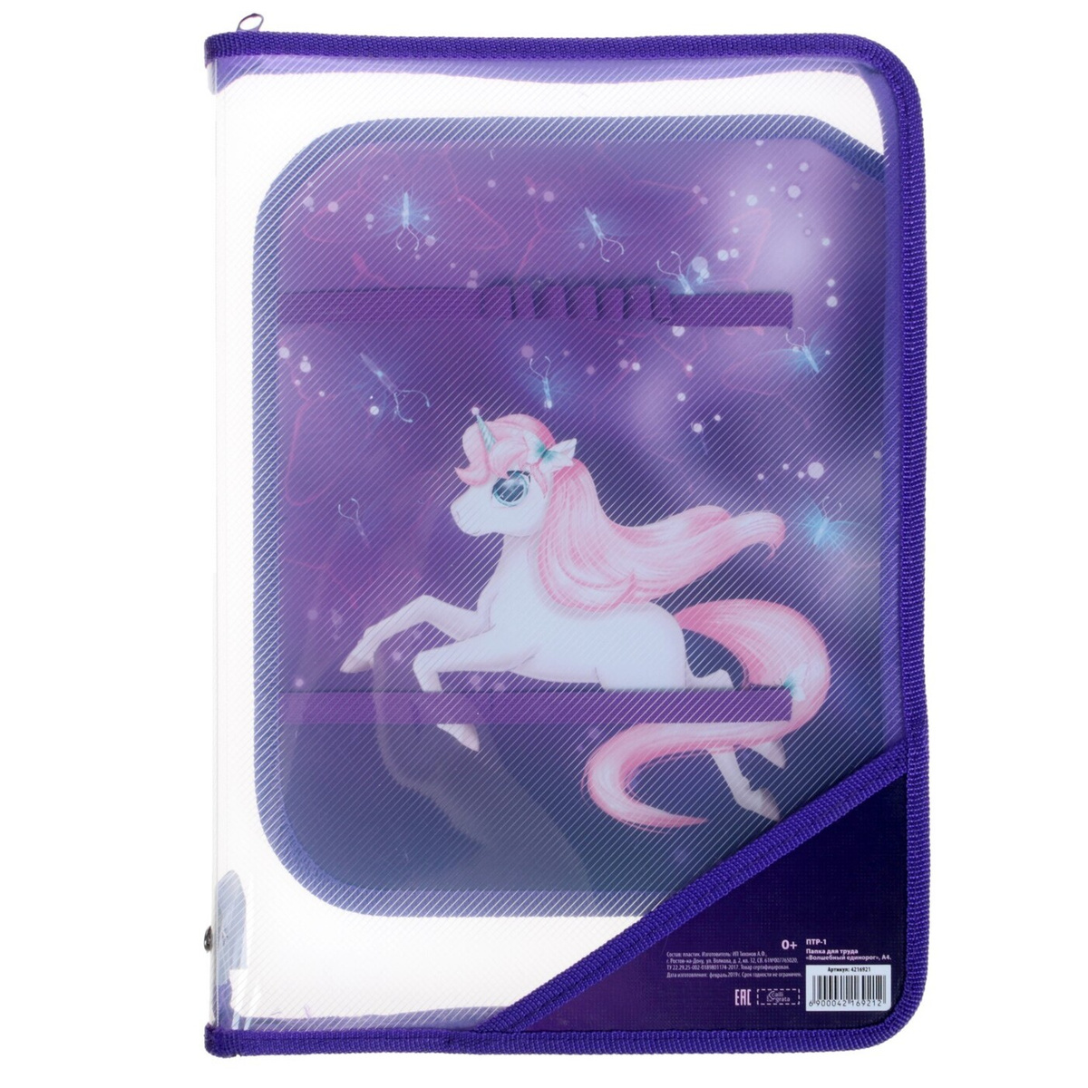 Calligrata / Папка для труда "Единорог", молния вокруг, откидная планка, А4