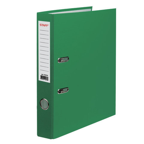 Папка-регистратор STAFF, с покрытием из ПВХ, 50 мм, без уголка, зеленая, 225979